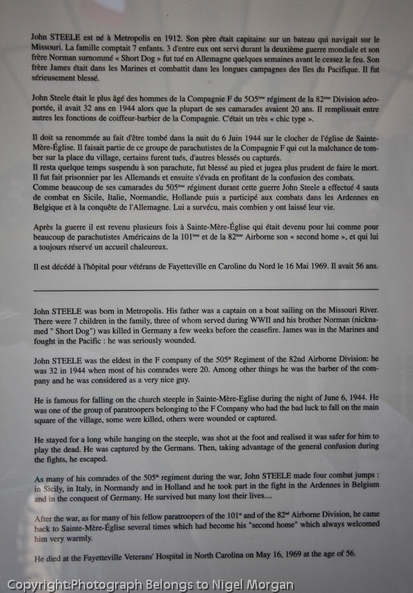 The actual paratrooper on D-Day was John Steele. 'F' Company 82nd Airborne.
